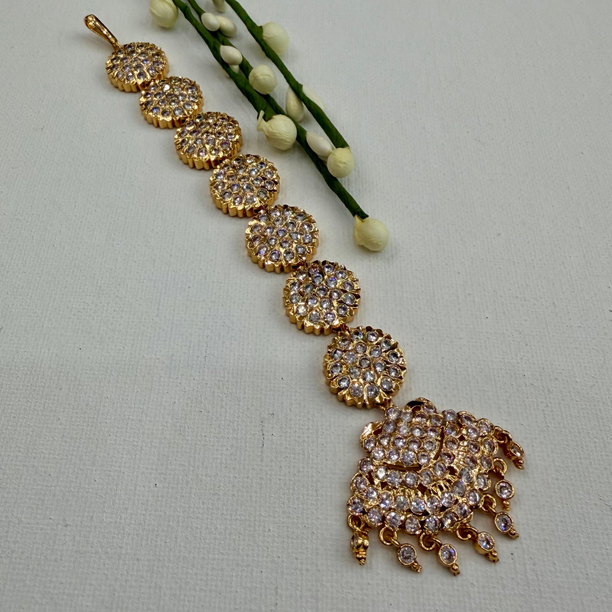 A beautifully crafted Pathakkam tikka designed to enhance your traditional style. This elegant piece adds a refined and graceful touch to any outfit.